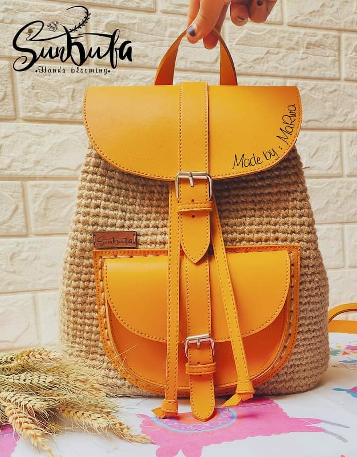 شنطة ضهر كروشية وجلد